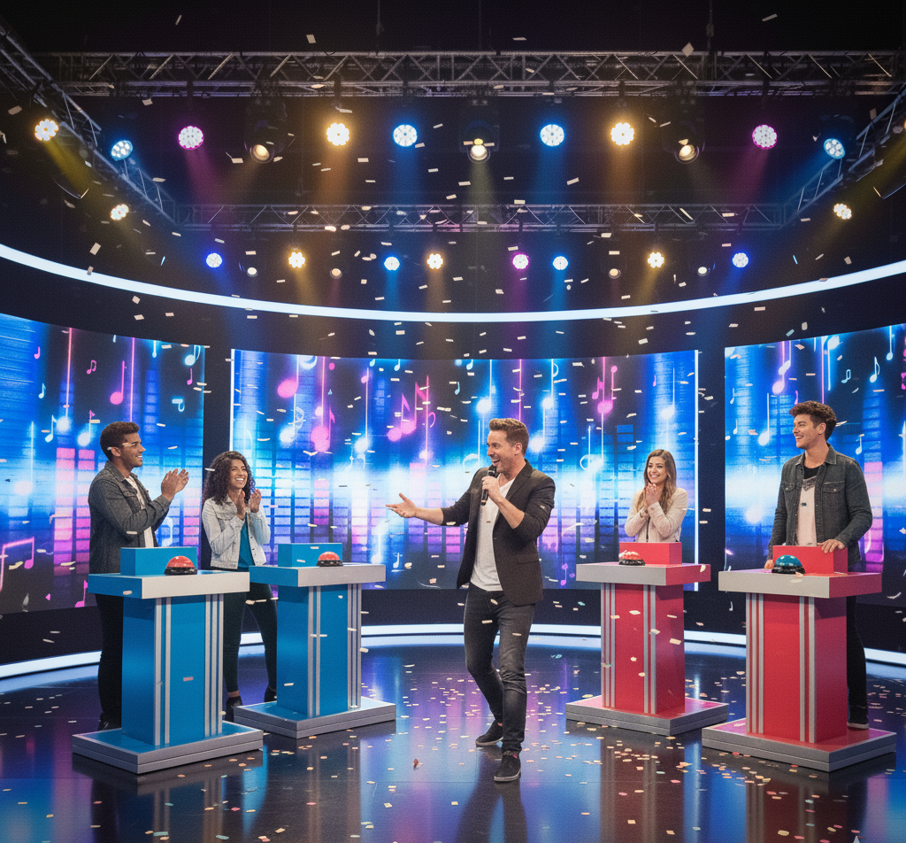 Vive la emoción de un auténtico plató de televisión. Forma tu equipo, elige tu juego y compite como si fueras parte de tu programa favorito.